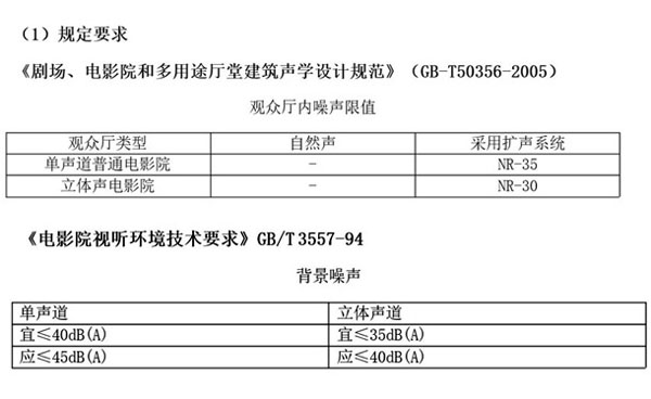 一、觀眾廳的噪聲標(biāo)準(zhǔn) 根據(jù)2001年文化部和建設(shè)部頒布的行業(yè)標(biāo)準(zhǔn),劇場(chǎng)觀眾席噪聲應(yīng)符合以下規(guī)定:甲等≤NR25, 乙等≤NR30, 丙等≤NR30, 《電影院星級(jí)評(píng)定要求》要求:觀眾廳動(dòng)態(tài)的本底噪聲應(yīng)符合NC30噪聲評(píng)價(jià)曲線(電影待業(yè)常用NC標(biāo)準(zhǔn),民用建筑設(shè)計(jì)常用NR標(biāo)準(zhǔn),二者曲線可換算近似)。