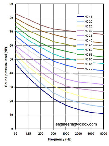四、聲學(xué)工作范圍及設(shè)計(jì) 一、影廳內(nèi)噪聲標(biāo)準(zhǔn) NC(Noise Criterion)經(jīng)常被用來評(píng)比室內(nèi)背景噪音的指標(biāo),NC規(guī)定了每個(gè)不同頻率容許的最高噪音量,一般取八個(gè)倍頻帶來計(jì)算最高的NC噪音值。NC值越高表示環(huán)境的噪音量越高。標(biāo)準(zhǔn)NC曲線可參考以下圖表。影廳的設(shè)計(jì)一般要求不超過以下NC要求: