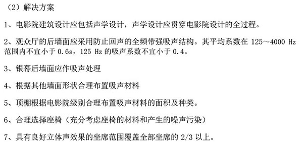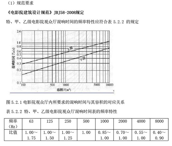四、影廳內(nèi)混響時(shí)間標(biāo)準(zhǔn) 影院內(nèi)的墻體都需要高吸音材料作飾面處理。不單止可再提高隔音效果,還保證聲音不會(huì)反彈影響觀眾視聽效果。吸音材料必須具有防火功能及厚度為5厘米。