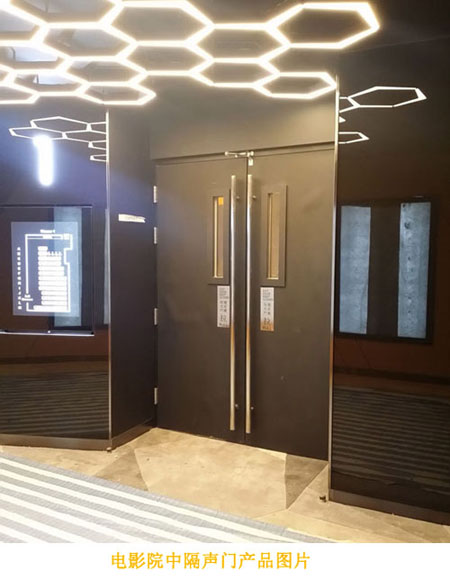 4. 隔聲門設(shè)計(jì) 影院隔聲設(shè)計(jì)中還有一個(gè)關(guān)鍵的部分就是觀眾廳的入/散場(chǎng)門的設(shè)計(jì)。按照國家規(guī)范,入/散場(chǎng)門必須采用防火門。一般要求隔聲門的隔聲性能應(yīng)達(dá)到35dB以上,即國標(biāo)《建筑用門空氣聲隔聲性能分級(jí)以其檢測(cè)方法》中規(guī)定的Ⅲ級(jí)隔聲門標(biāo)準(zhǔn)。而一般的防火門離上述標(biāo)準(zhǔn)還有很大的距離。考慮到影院的隔聲要求,一般做法同時(shí)安裝防火門和隔聲門,并注意隔聲門與墻體(尤其是輕質(zhì)隔墻)的連接和密封處理。遇到兩個(gè)觀眾廳的出(入)口相對(duì)時(shí),可以采用調(diào)整出入口的位置或者方向的辦法解決噪聲干擾。做雙重門須注意,門之間要有一定的距離,并設(shè)有相應(yīng)照明。
