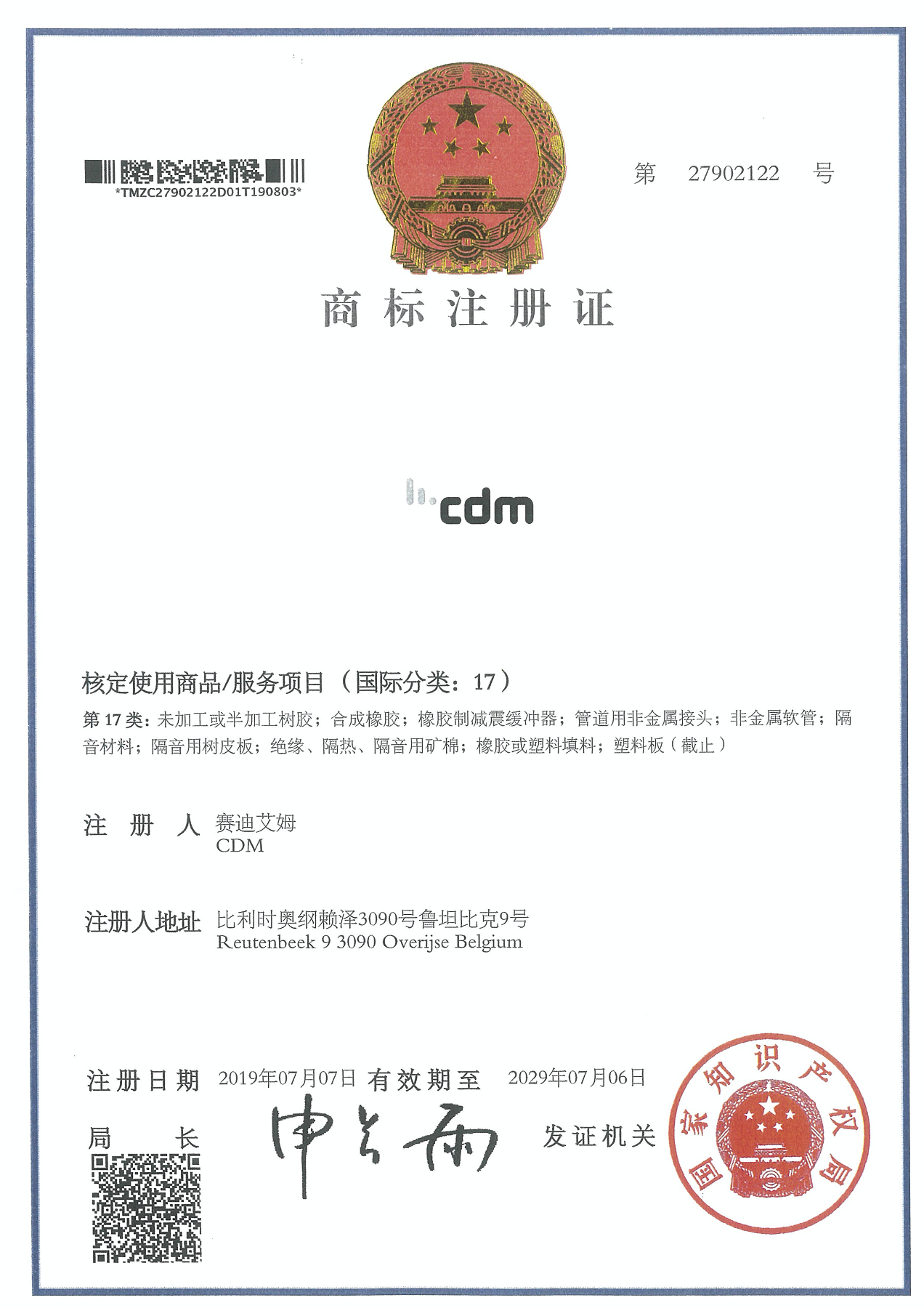 CDM Trademark Registration Certificate