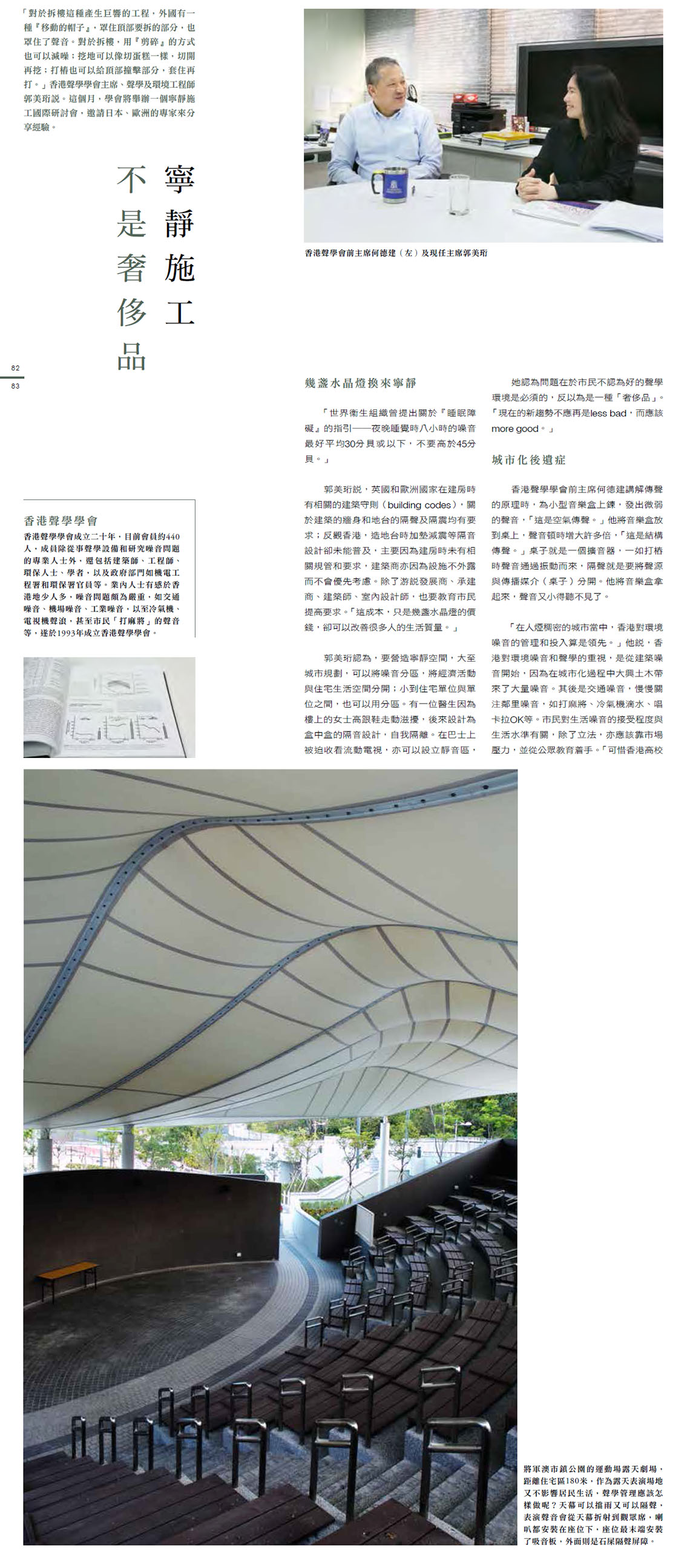 在2014年4月香港明報(bào)周刊曾訪問我司聲學(xué)專家梁永仁先生,關(guān)于隔聲和消聲的妙法,以下文章是當(dāng)時(shí)周刊訪問我司梁永仁先生內(nèi)容。