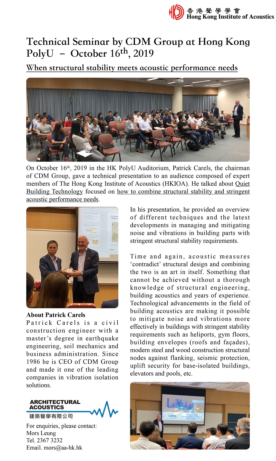 Technical Seminar by CDM Group at Hong Kong PolyU – October 16th, 2019