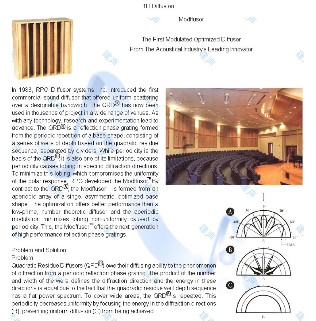 In 1983.RPG Diffusor systems.Inc.introduced the first commercial sound diffuser that offered uniform scattering over a designable bandwidth.The QRD has now been used in thousands of project in awide range of venues.