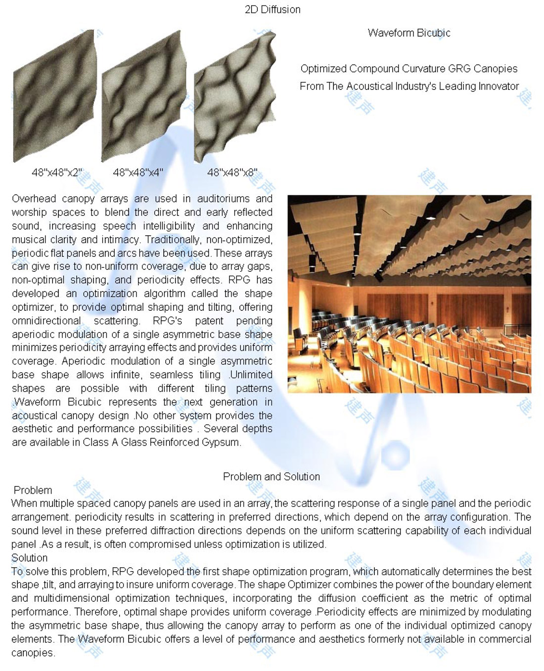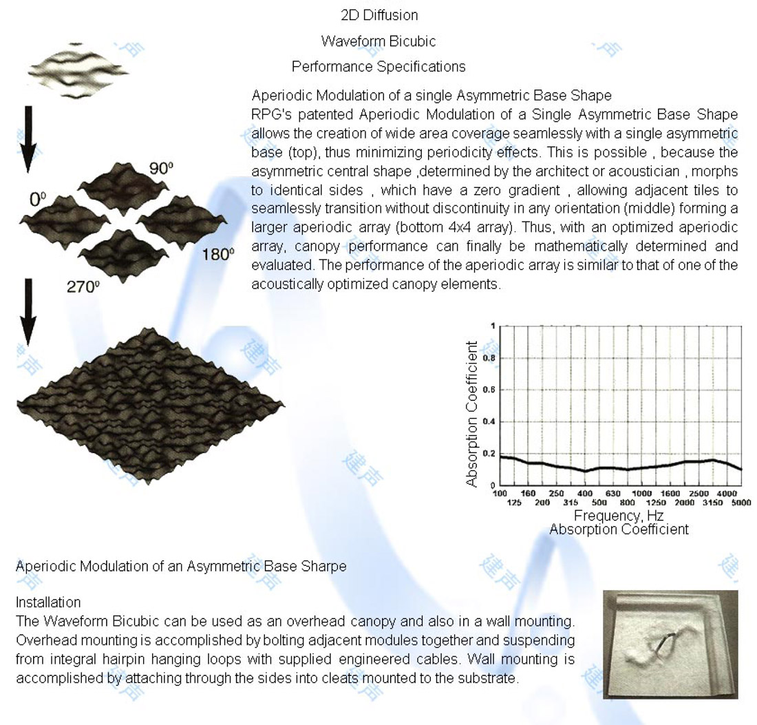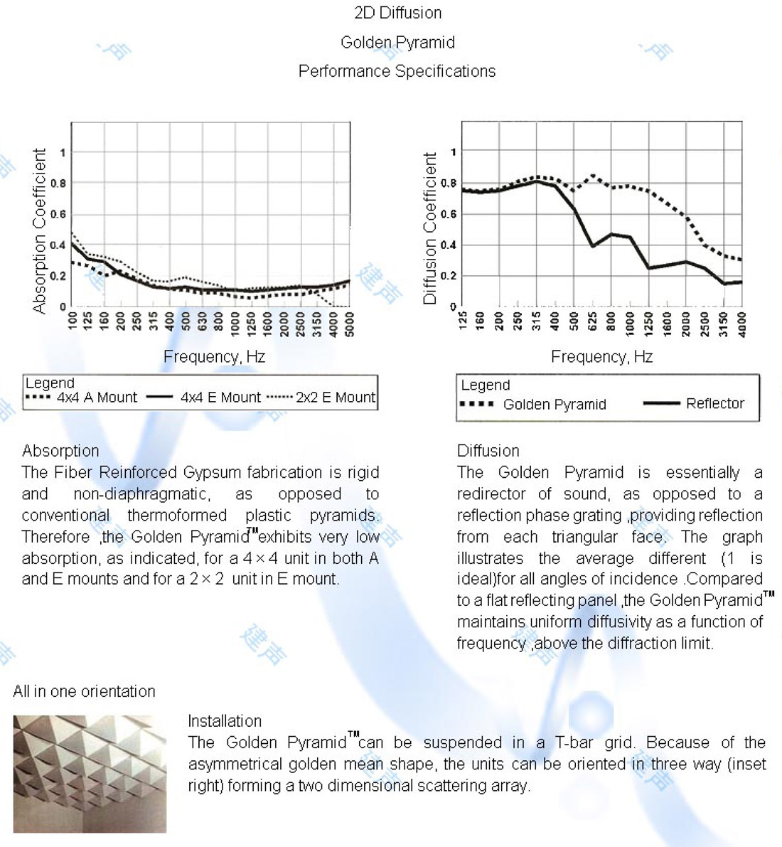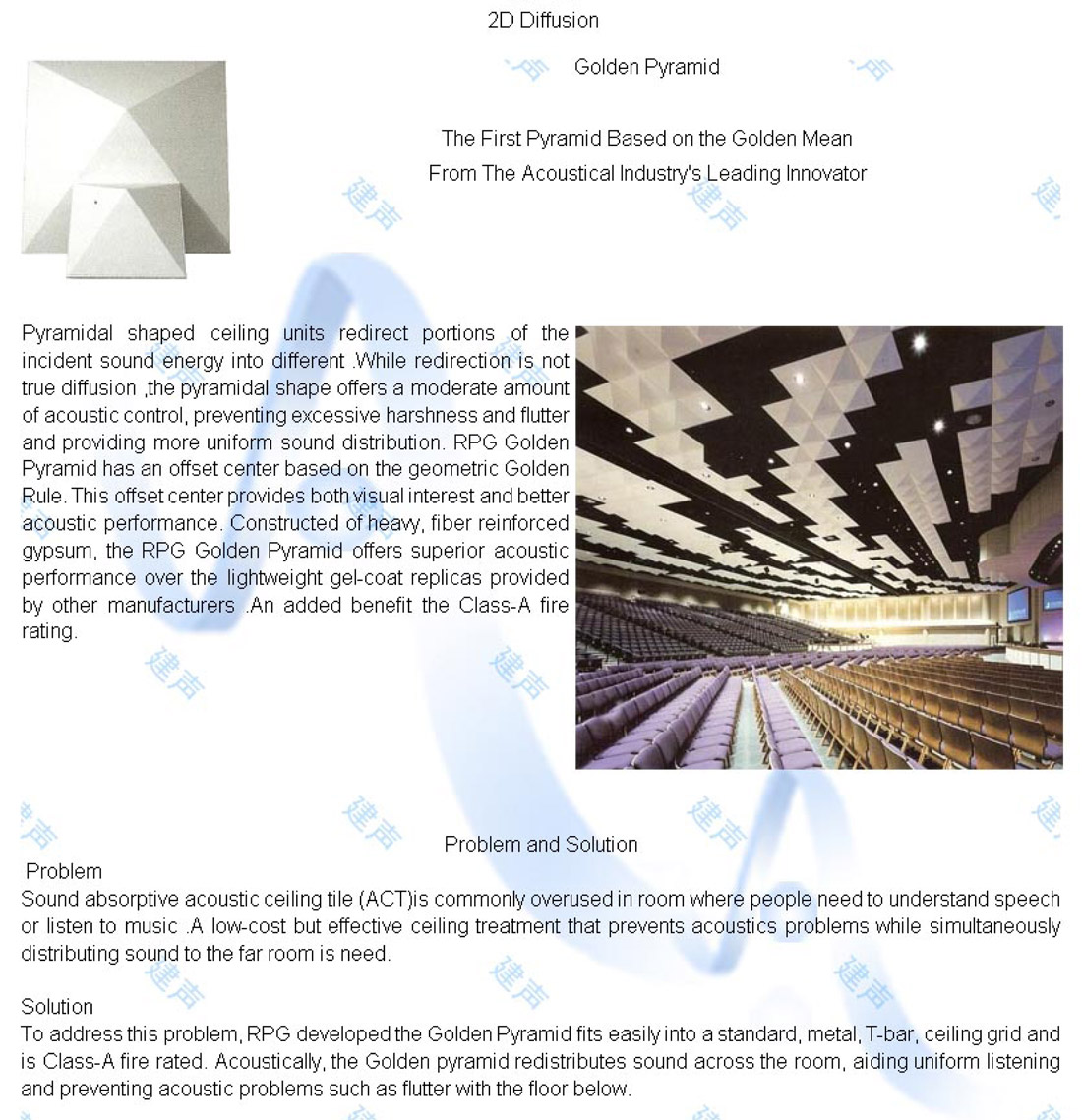 Pyramidal shaped ceiling units redirect portions of the incident sound energy into different.While redirection is not true diffusion.th pyramidal shape offers a moderate amount of acoustic control.