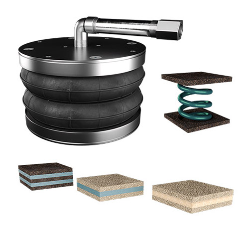 Stravimech Bearing* isolation supports offer a simple and cost-effective vibration and impact isolation to a wide range of machines, such as compressors, pumps, air-handling and cooling units, moulding systems in foundry, textile machinery, vibrating machinery, etc.