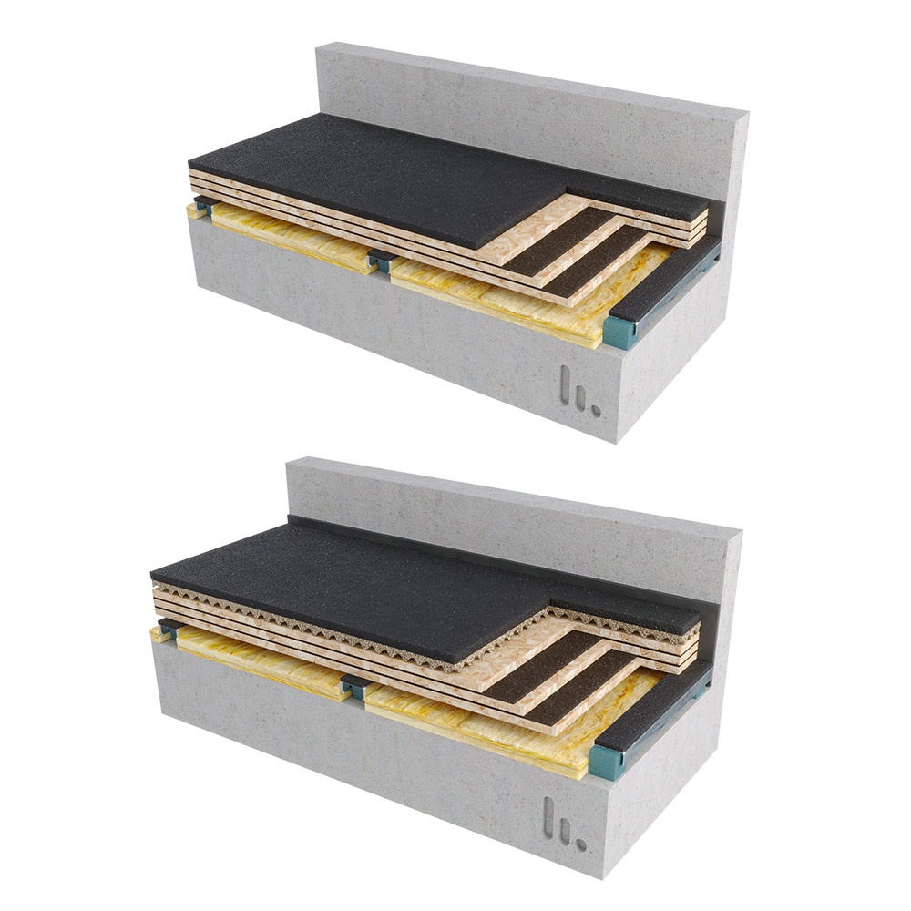 CDM Stravitec patented dBooster® technology decouples the load distribution layer from the resilient supports with minimal contact area.