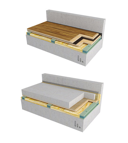 • Highly adaptable solution with multiple variations in height, load bearing capacity and acoustic performance