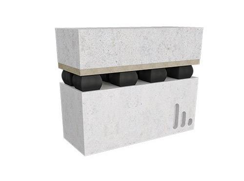 Stravibase SEB comprise a series of elastomer pads laminated to formwork on one or both sides. These bearings can be designed to meet natural frequencies between 6Hz and 20Hz, and can be manufactured in a variety of dimensions to accommodate acoustic design loads up to 10MPa.
