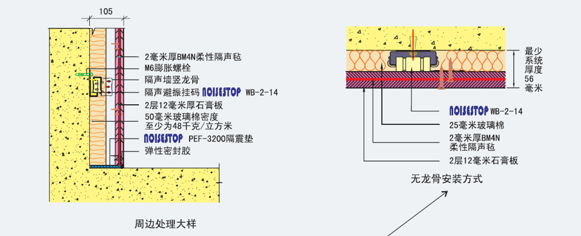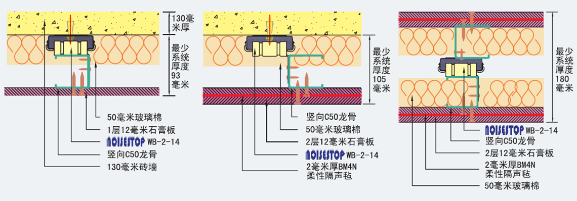 聲默墻身隔振掛碼(NOISESTOP WB-2-14)主要用于建筑業(yè)、家居臥室、廠房、會議室、多功能廳、KTV房和辦公室等多方面需要降噪的場所。