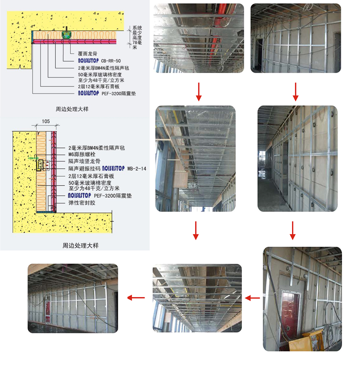 4.按要求安裝龍骨,將龍骨用自攻螺絲固定在WB-2-14墻身隔振掛碼上。