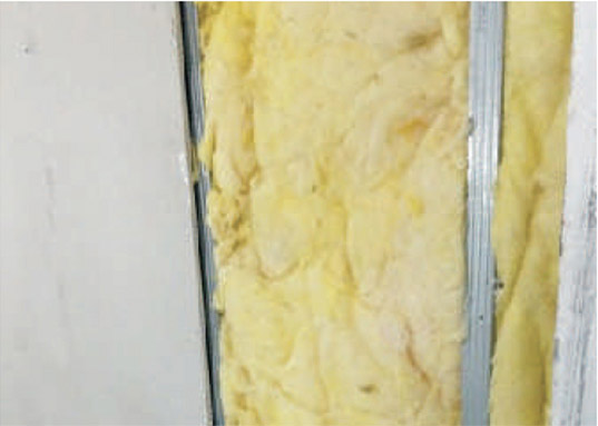 5.安裝吸音棉(吸音棉厚度按圖紙要求),然后安裝石膏板,石膏板須以錯搭的方式安裝。