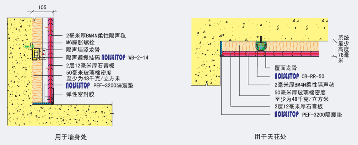 用于墻身和天花提高隔聲量